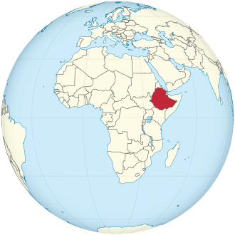 Äthiopien liegt am Horn von Afrika und in Ostafrika im weiteren Sinne. Das Land ist nach der Fläche der zehntgrößte Staat in Afrika, rund dreimal so groß wie Deutschland. Hinsichtlich der Bevölkerungszahl liegt das Land an zweiter Stelle hinter Nigeria. Seine Grenzen sind 5328 km lang und trennen das Land auf einer Länge von 349 km von Dschibuti, auf 912 km von Eritrea, auf 861 km von Kenia, auf 1600 km von Somalia, auf 883 km vom Südsudan und auf 723 km vom Sudan.