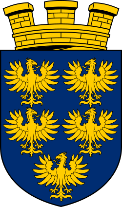 Das niederösterreichische Wappen symbolisiert die republikanische Mauerkrone und die fünf habsburgischen Erblande.