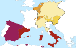 1555/56 dankte Karl V. nach dem Augsburger Religionsfrieden ab. Dies führte zur Teilung der Habsburger in eine spanische und in eine österreichische Linie. Die österreichische Linie stellte bis 1806 fast ununterbrochen den römisch-deutschen Kaiser.