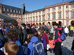 Katholikentagsbeflaggung an der Mannheimer Jesuitenkirche