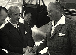 İnönü (2. v. l.) wird 1932 am Lido von Ostia durch Mussolini (Mitte) empfangen