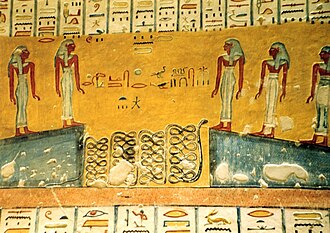 Szene aus dem Pfortenbuch, einem Unterweltsbuch aus dem Grab von Ramses IV., Tal der Könige