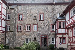 Straßenfassade des 1577 und 1594 zum landgräflichen Schloss (Witwensitz) ausgebauten Südflügels