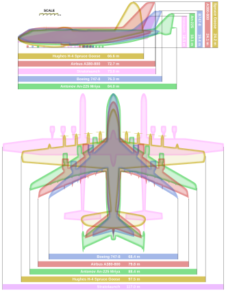 Airbus A380, Antonow An-225, Boeing 747-8I, Hughes H-4, Scaled Composites Stratolaunch