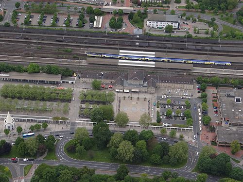 Der östlich vorgelagerte Bahnhofsvorplatz wurde auf dessen Nordseite von 1870 bis 1978 vom Gebäude der Deutschen Reichspost gerahmt, einem repräsentativen Neorenaissancebau nach Entwurf von Carl Schwatlo.