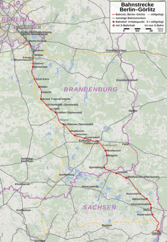 | Kursbuchstrecke (DB): | 202 Berlin–Cottbus 220 Cottbus–Görlitz | ||||||||||||||||||||||||||||||||||||||||||||||||||||||||||||||||||||||||||||||||||||||||||||||||||||||||||||||||||||||||||||||||||||||||||||||||||||||||||||||||||||||||||||||||||||||||||||||||||||||||||||||||||||||||||||||||||||||||||||||||||||||||||||||||||||||||||||||||||||||||||||||||||||||||||||||||||||||||||||||||||||||||||||||||||||||||||||||||||||||||||||||||||||||||||||||||||||||||||||||||||||||||||||||||||||||||||||||||||||||||||||||||||||||||||||||||||||||||