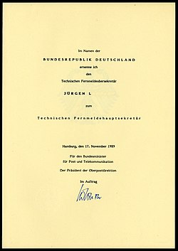 Da sich Beförderungen auf die Stelle, Funktion und gegebenenfalls auf das Arbeitsentgelt auswirken, sind sie durch den Arbeitgeber in Schriftform zu fassen. Beförderungen gehören zu den Personalmaßnahmen oder -angelegenheiten, die der Mitbestimmung (Zustimmung) des Betriebsrats (§ 99 Abs. 1 BVG) oder Personalrats (§ 78 Abs. 1 Nr. 2 BPersVG, § 72 Abs. 1 LPVG NRW) bedürfen. Das Beförderungsschreiben entfaltet lediglich deklaratorische Rechtswirkung, denn erst die Erwähnung des Beförderten im Organigramm gilt als Beförderung; das Schreiben ist in die Personalakte aufzunehmen. Höhere Stellen und Funktionen können mit einem Titel (Handlungsvollmacht, Prokurist, Direktor) verbunden sein, dann sind bei Prokuristen, Vorstandsmitgliedern oder Geschäftsführern auch Eintragungen ins Handelsregister vorzunehmen.