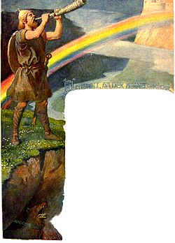 Heimdall mit Gjallarhorn und Bifröst – Emil Doepler (1855–1922), Erstveröffentlichung 1905