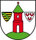 Das Wappen wurde am 14. Februar 2000 durch das Regierungspräsidium Dessau genehmigt und im Landeshauptarchiv Magdeburg unter der Wappenrollennummer 4/2000 registriert. Blasonierung: „In Silber auf gewölbtem grünen Schildgrund ein roter Rundturm mit grünem, rot bekreuztem Spitzdach und offenem Rundbogenfenster über offenem Rundbogentor; der Turm beseitet von je einem schwebenden Dreieckschild, rechts: neunmal von Schwarz über Gold geteilt, schrägrechts belegt mit einem grünen Rautenkranz (Sachsen), links: in Silber drei (2:1) rote Seeblätter (Grafen von Brehna)“. Das Wappen wurde vom Magdeburger Kommunalheraldiker Jörg Mantzsch neugestaltet.