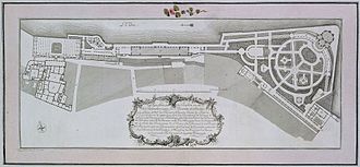 Der Westen der Terrasse wird über eine Freitreppe erschlossen, die bereits 1811 geplant war. 1814 erfolgte nach der Freigabe für die Öffentlichkeit der Bau unter der Leitung von Gottlob Friedrich Thormeyer innerhalb von nur vier Monaten. Die beiden Sandsteinlöwen von Christian Gottlieb Kühn wurden 1863 an den Großen Garten versetzt, wo sie den Eingang der Querallee von der Tiergartenstraße aus bewachen.