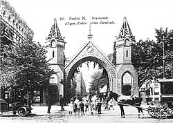 1896/1897 von Franz Schwechten entworfenes „Beamtentor“ der AEG an der Brunnenstraße 111