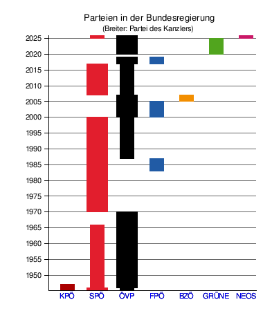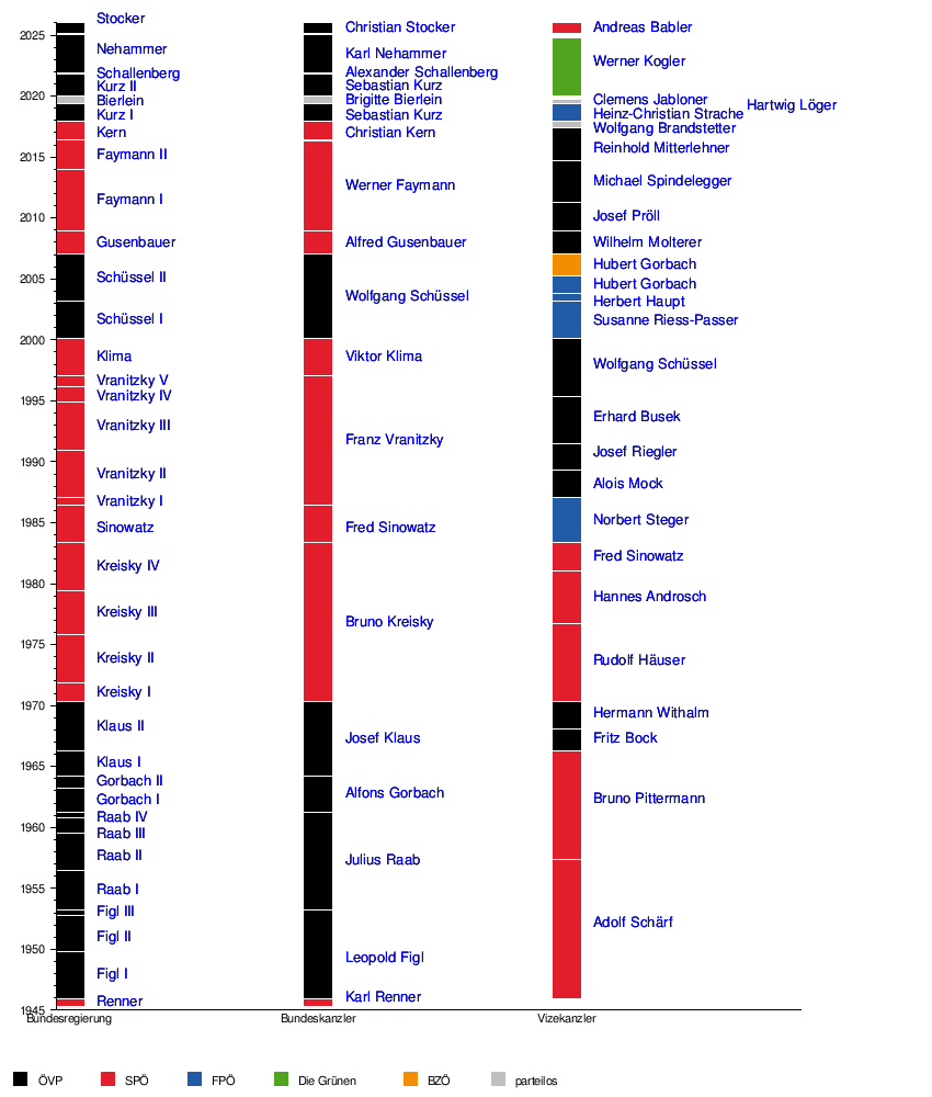 | Bundesregierung Stocker | 3. März 2025 | lfd. | 29. Sep 2024 | 155 Tage | ÖVP – SPÖ – NEOS |