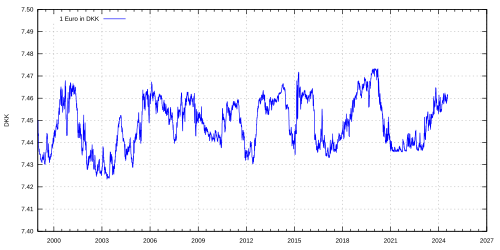 Die Euroeinführung in den Ländern der Europäischen Union im Jahr 2002 wurde in Dänemark durch einen Volksentscheid am 28. September 2000 verhindert. Der Wechselkurs der dänischen Krone ist jedoch mit einer maximalen Schwankungsbreite von 2,25 % an den Euro gebunden.