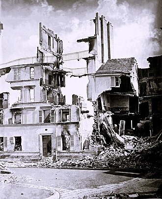 ![]() Hausruine in Saint-Cloud, Fotoaufnahme zur Dokumentation der Kriegsschäden, um 1871 im Pariser Atelier von Adolphe Braun entwickelt | |||||||||||||||||