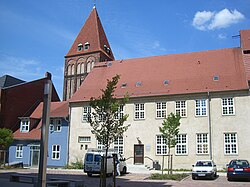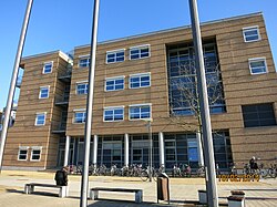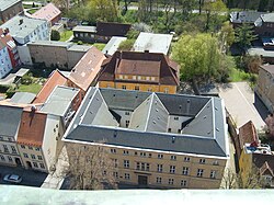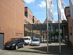 Der Bereich Rechtswissenschaften der Rechts- und Staatswissenschaftlichen Fakultät vom Dom St. Nikolai aus gesehen.