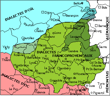 Frankoprovenzalisch war jahrhundertelang die Umgangssprache in einem großen Teil der jetzigen französischen Region Rhône-Alpes (Beaujolais, Bresse, Bugey, Dauphiné, Dombes, Lyonnais, Savoyen), im Süden der Franche-Comté (Départements Jura und Doubs) sowie im Südosten der Region Burgund (Louhannais, im Département Saône-et-Loire). Diese romanische Sprache war über das Mittelalter hinaus auch die Umgangssprache der Bevölkerung in der Rhône-Metropole Lyon.