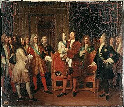 Der russische Zar Peter der Große besucht 1717 den jungen König Ludwig XV. von Frankreich