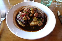 Auch in Frankreich gibt es berühmte Eintopfgerichte wie Pot-au-feu, Poule au pot oder Cassoulet; es sind Gerichte der ländlichen Küche. In der Haute Cuisine ist ein mehrgängiges Menü obligatorisch, im einfachsten Fall bestehend aus Vorspeise, Hauptgang und Dessert, wozu Wein und Wasser getrunken werden und im Norden auch Bier. Beilagen gibt es nicht, Kartoffeln werden als Gemüse betrachtet, aber ein Brotkorb steht immer auf dem Tisch.