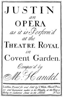Giustino oder Justin (HWV 37) ist eine Oper (Dramma per musica) in drei Akten von Georg Friedrich Händel. Sie erlebte ihre Uraufführung am 16. Februar 1737 im T