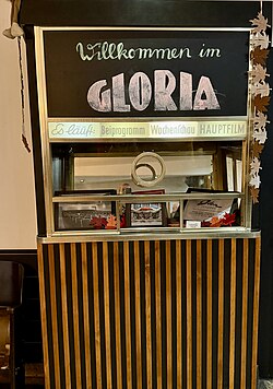 Am 30. November 1956 wurde das Gloria als Kino eröffnet. Als Eröffnungsfilm wurde Verlobung am Wolfgangsee gezeigt, das erste Bühnenstück war Till Eulenspiegel mit Gérard Philipe. Ab den 1970er Jahren wurde das Haus als Pornokino genutzt; unter anderem wurden Filme mit Ingrid Steeger gezeigt. Manches erinnert heute noch an die Funktion als Kino, die Schaukästen mit greller Neonschrift im Eingang, das Kassenhäuschen oder der rote Samt im Zuschauerraum.
