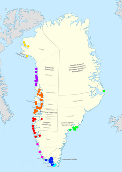 • Das Grönlandische wird in drei Hauptdialekte eingeteilt: Westgrönländisch (Kitaamiusut), Ostgrönländisch (Tunumiisut) und Inuktun (Avanersuarmiusut). Als Standardvarietät gilt der unter anderem in der Hauptstadt Nuuk gesprochene Unterdialekt des Westgrönländischen. Dieser ist vergleichsweise archaisch und diente unter anderem Samuel Kleinschmidt als Grundlage seiner 1851 erschienenen grönländischen Grammatik, die in den folgenden Jahrzehnten gemeinsam mit seinem Wörterbuch dafür sorgte, dass dieser Dialekt zum Standard wurde.