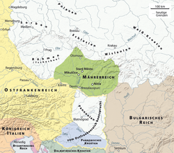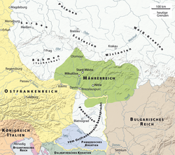 „Die hochtrabende Bezeichnung ‚Großmähren‘ oder ‚Großmährisches Reich‘ ist bei der Bezeichnung dieses slawischen Königreiches wenig hilfreich, da sie auf einer Fehllesung des byzantinischen Traktates De administrando imperio von Kaiser Constantin VII. aus dem 10. Jh. beruht. […] Constantin VII. benutzt den Ausdruck megále Morabía im Sinn von ‚Alt-Mähren‘, nicht von ‚Großmähren‘.“