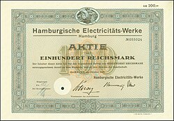 Aktie über 100 RM der Hamburger Electrizitäts-Werke vom 31. Oktober 1931