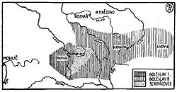 Der böhmische Herzog Bretislaus I. erwarb 1019 oder 1029 die mährischen Ländereien zurück, die nachfolgend überwiegend von einem jüngeren Sohn des böhmischen Herzogs/Königs regiert wurden. Um 1031 fiel Bretislaus in Ungarn ein und 1035 unterstützte er den Kaiser gegen die Lausitzer. 1039 fiel er in Polen ein, eroberte Posen und verwüstete Gnesen; danach eroberte er einen Teil Schlesiens einschließlich Breslau. Die Zerstörung von Gnesen veranlasste die polnischen Herrscher, ihre Hauptstadt nach Krakau zu verlegen. 1040 besiegte Bretislaus I. die Invasion des römisch-deutschen Königs Heinrich III. in Böhmen in der Schlacht bei Brůdek. Im nächsten Jahr belagerte Heinrich III. jedoch Bretislaus in Prag und zwang ihn, auf alle seine Eroberungen außer Mähren zu verzichten. 1047 handelte Heinrich III. einen Friedensvertrag zwischen Bretislaus und den Polen aus.