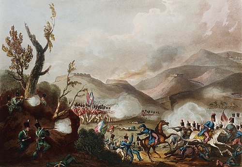 Britische Jäger (links in grüner Uniform) nehmen in der Schlacht von Buçaco (1810) französische Truppen von der Flanke her unter Beschuss