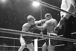 Jürgen Blin (links) gegen Peter Weiland (rechts) um die Deutsche Meisterschaft im Schwergewicht in Kiel; 1968