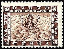 Briefmarke, herausgegeben von der Regierung Gorkhas im Jahre 1907 (गोर्खा सर्कार Gorkha Sarkār)