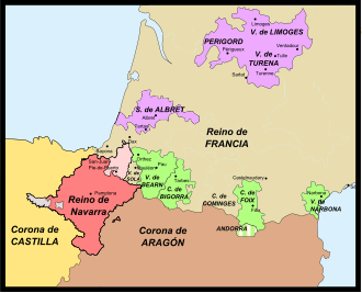 1512 zerfiel Navarra in einen nach Spanien und einen nach Frankreich orientierten Teil: Ober-Navarra (spanisch Alta Navarra) und Nieder-Navarra (französisch Basse-Navarre). Nieder-Navarra wurde 1620 mit dem Königreich Frankreich vereint, während Ober-Navarra 1841 als Provinz im spanischen Zentralstaat aufging.
