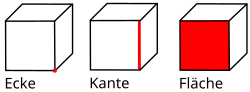 Ecke, Kante und Fläche eines Würfels