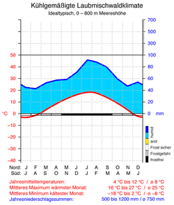 Kühle Zone / MittelbreitenJahresmitteltemperatur0 bis 12 °C