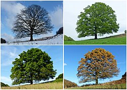 Sommergrüne Eiche im Laubrhythmus der vier Jahreszeiten