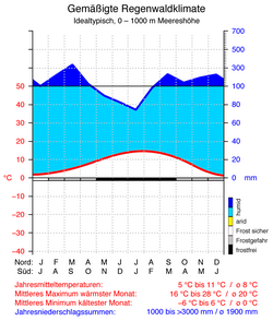 • Gemäßigte Regenwaldklimate (Westküsten)