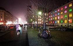 Rathaus Neukölln und Karl-Marx-Straße während des Late Light Shoppings, November 2012