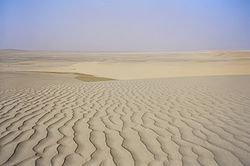 Das Grundwasser hat einen hohen Salzgehalt; Trinkwasser wird in Meerwasserentsalzungs-Anlagen gewonnen. Im Südosten befindet sich die Meereslagune Chaur al-Udaid.