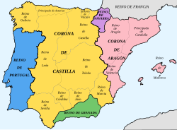 Durch die Heirat zwischen Isabella und Ferdinand entstand noch keinerlei formale Verbindung der Krone von Kastilien mit der Krone von Aragón. Es handelte sich lediglich um eine Personalunion, die im Jahr 1504 mit der Thronfolge Johannas aufgehoben und erst 1516 unter Karl I. wiederhergestellt wurde.