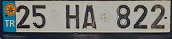 Die Kennzeichen ähneln dem EU-Muster. Sie zeigen am linken Rand einen blauen Balken mit dem Nationalitätskennzeichen TR.