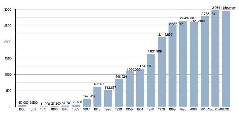Quellen: 1897:, 1926. 1939, 1961:, 1970:, 1979, 1989:1995-2010:2020: