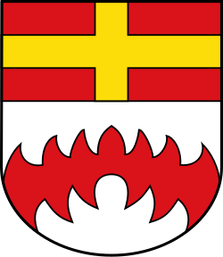 In Silber ein roter siebenteiliger Rautensparren unter einem roten Schildhaupt mit durchgehendem goldenen Kreuz.