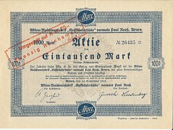 Aktie der Aktien-Maschinenfabrik Kyffhäuserhütte vom 14. September 1923 über 1000 Mark