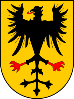 | Blasonierung: „In Gold ein schwarzer Adler mit roter Zunge und roten Fängen.“ | |