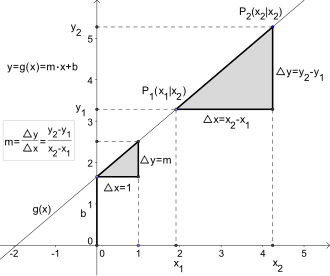 ΔyΔx=m=konst ,{\displaystyle {\frac {\Delta y}{\Delta x}}=m={\text{konst ,}}}{\displaystyle {\frac {\Delta y}{\Delta x}}=m={\text{konst ,}}}