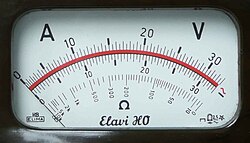 Skalen eines Analogmultimeters (nur die mittlere Skale ist linear geteilt)