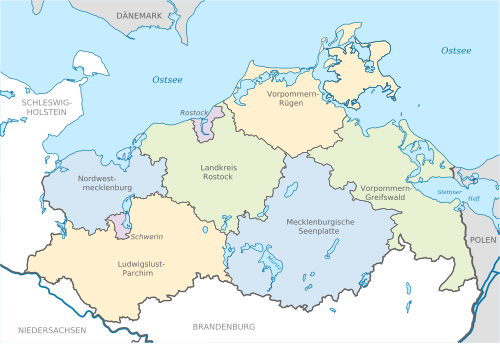 Hinzu kommen die beiden kreisfreien Städte Schwerin und Rostock.