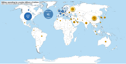 • Die Höhe des Verteidigungshaushalts ist als Richtwert zu verstehen, da ihm häufig Gelder aus anderen Ressorts (zum Teil indirekt) zufließen. Insbesondere kleine Staaten mit schwacher Volkswirtschaft werden häufig von größeren Ländern mit Militärhilfen unterstützt.