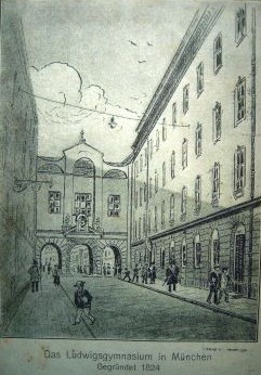 Ludwigsgymnasium und Hollandeum, gesehen von der Ettstraße (1908)