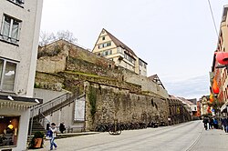Die Mühlstraße in Tübingen ist eine zentrale Straße durch den Gelände-Einschnitt zwischen Altstadt und Österberg.